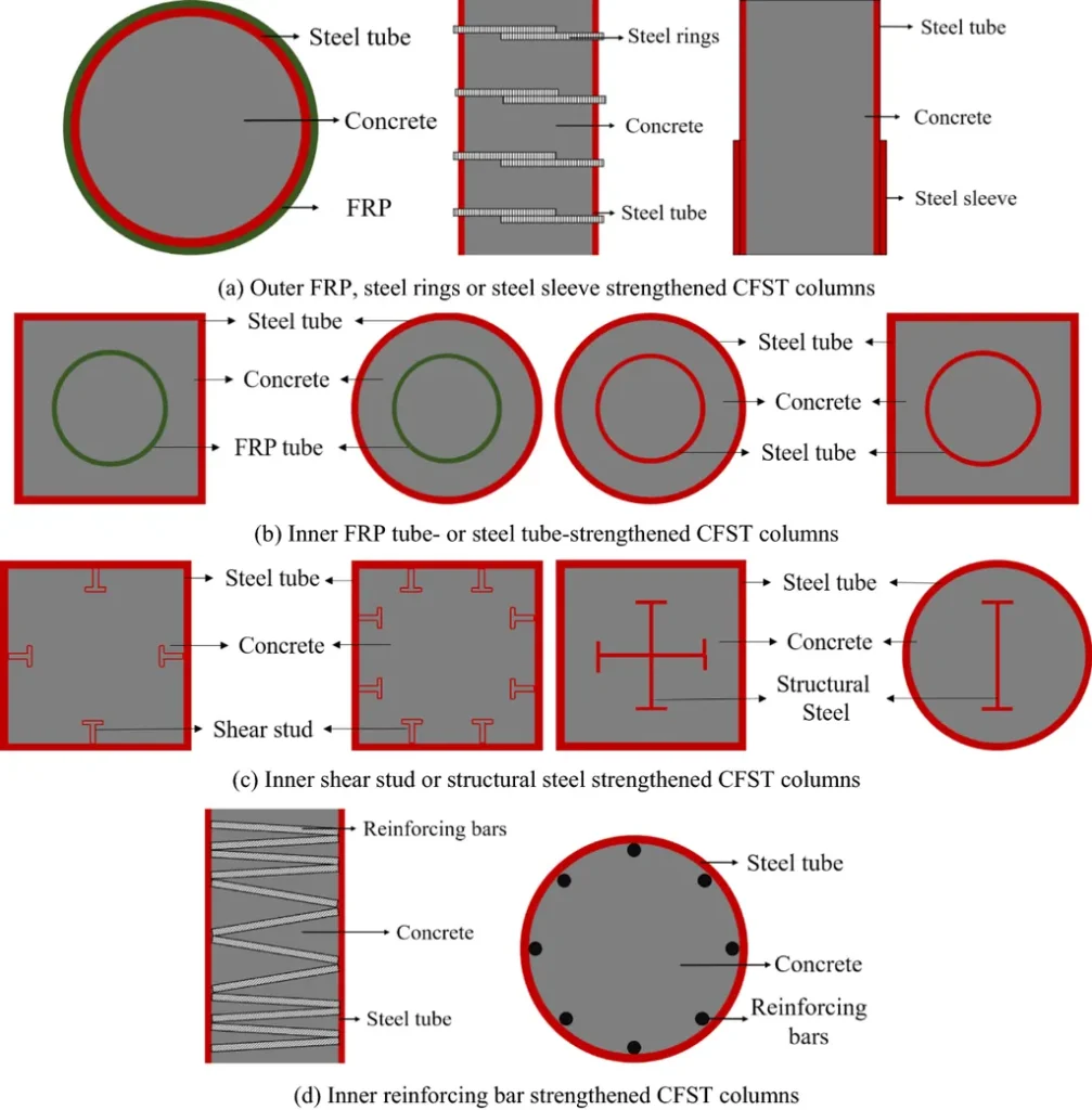 H-CFST columns, known for their high strength and ductility, have been widely adopted in modern engineering. However, their unique mechanical behavior, stemming from incomplete concrete filling and varying radial confinement, has posed challenges in applying existing constitutive models. Zheng’s study introduces a novel layered confined concrete constitutive model, modifying Mander’s model to better account for the radial distribution of lateral steel restraint.