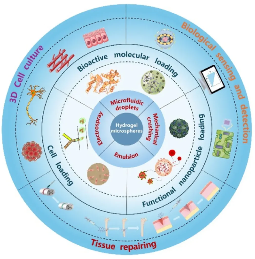 Hydrogels, a network of polymer chains that can absorb and retain large amounts of water, have been a subject of interest for years. However, the recent focus on hydrogel microspheres represents a significant shift in the field. “HMs offer unique structural and functional advantages,” explains Huang. “They can be composed of diverse biobased materials and fabricated through various preparation methods, making them highly versatile for different biomedical applications.”